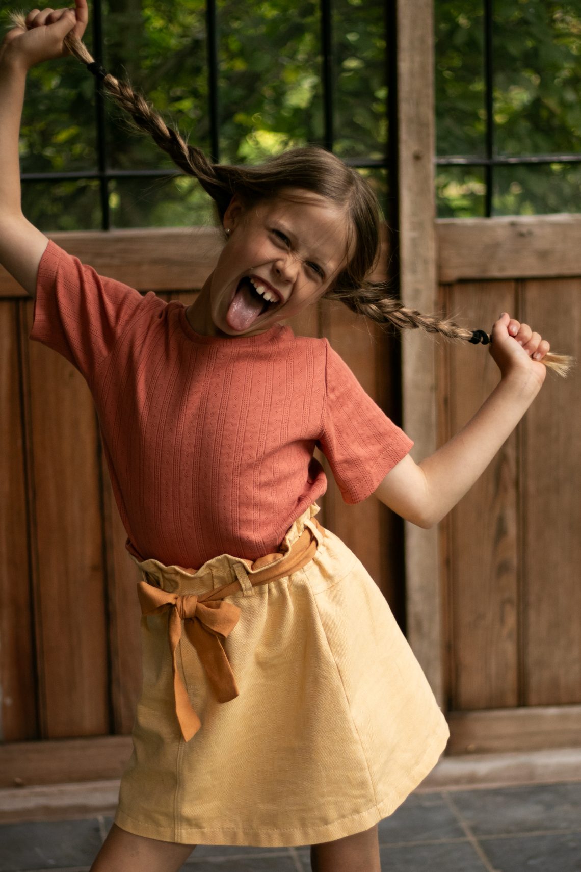 Naar aanleiding van de aankomende warmere dagen hebben we onze winterkleerkast aangevuld met frissere stuks. Hierbij zat ook dit setje: een Cezanne shirt & Eve rokje. Ik maakte dit setje naar aanleiding van mijn boek en het zit nog altijd prima! Voor dit setje combineerde ik het Cezanne shirt met de Eve rok. Je kan de twee patroontjes vinden in het boek ‘De complete kindergarderobe’. Maar... je kan het Cezanne patroon nu ook apart vinden als individueel patroon!
