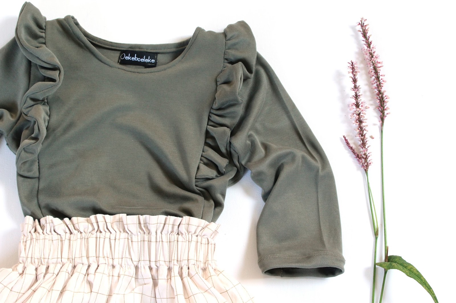 De ruffles werden dubbel geknipt. Ik naaide ze op elkaar, keerde ze om en krijg op die manier dit effect. Vooraan lopen de ruffles ook langer door dan achteraan.