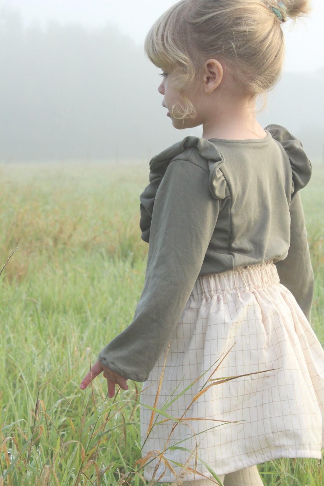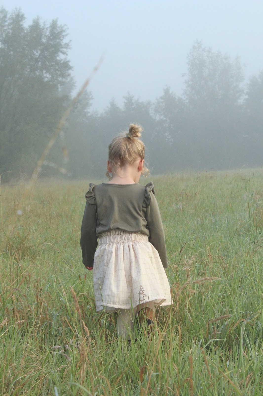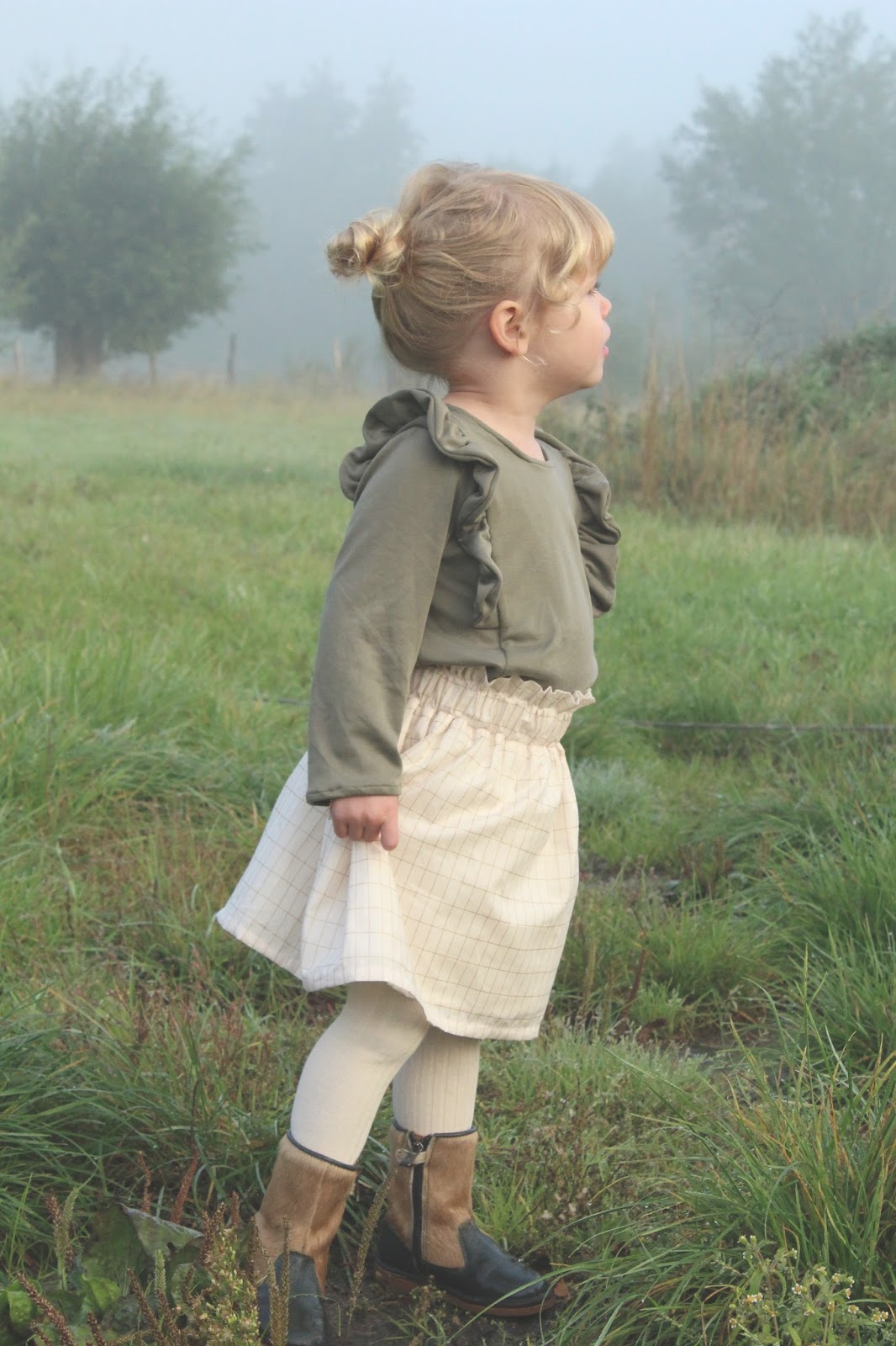 Wanneer ik zaterdag opstond en het mistig weer zag dacht ik oo ideaal voor foto’s van deze outfit. Ik trok de meisjes hun kleren aan en ging in de wei achter ons huis deze foto’s nemen. Mist is zo een dankbaar natuurelement voor foto’s!!