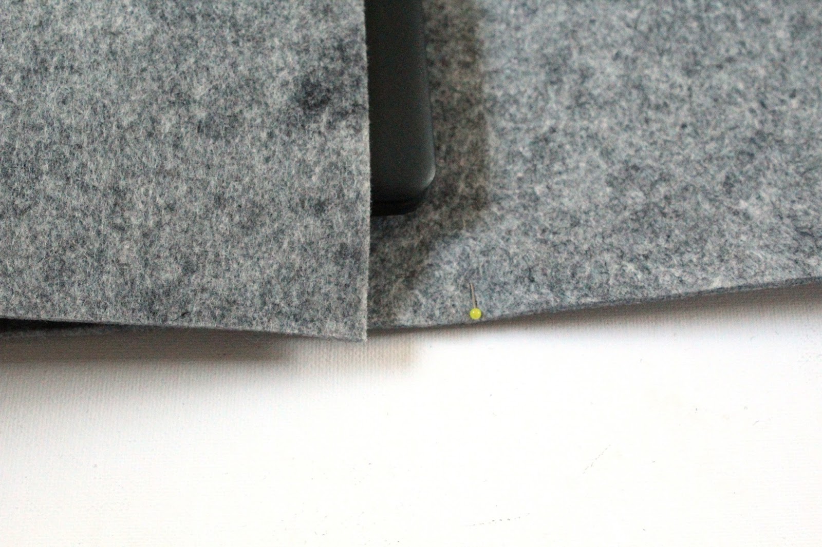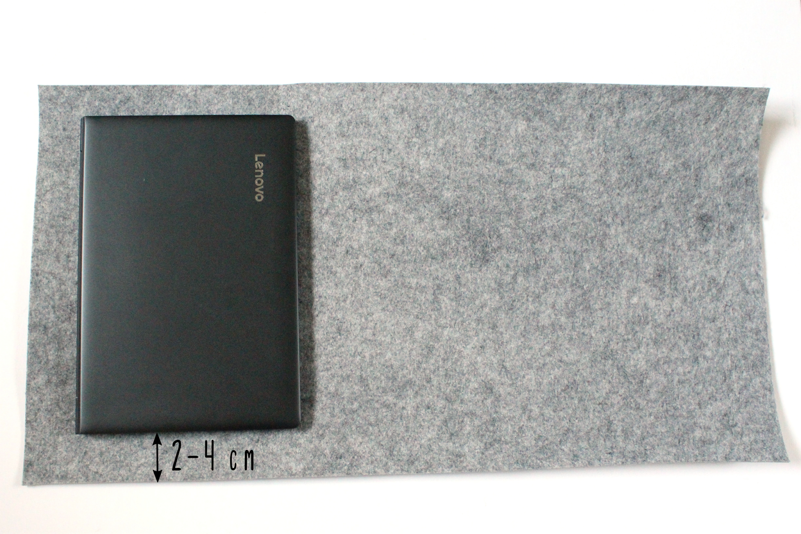 Stap 2: Wikkel nu de laptop in het vel. Markeer met een speldje tot waar de laptop komt.