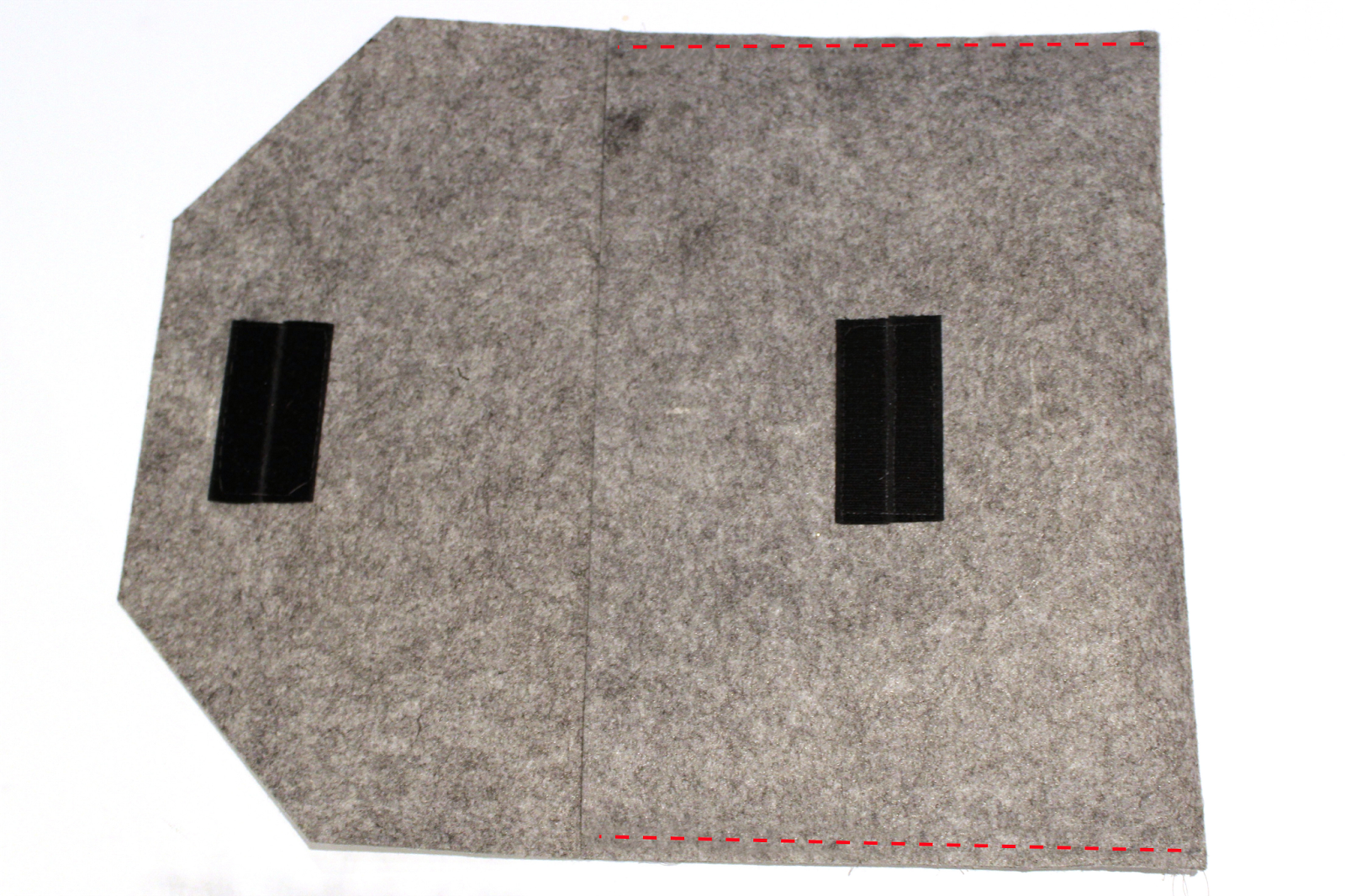 Stap 6: Knip 2 x 2 reepjes velcro (5 cm) en naai deze vast op de gemarkeerde punten.