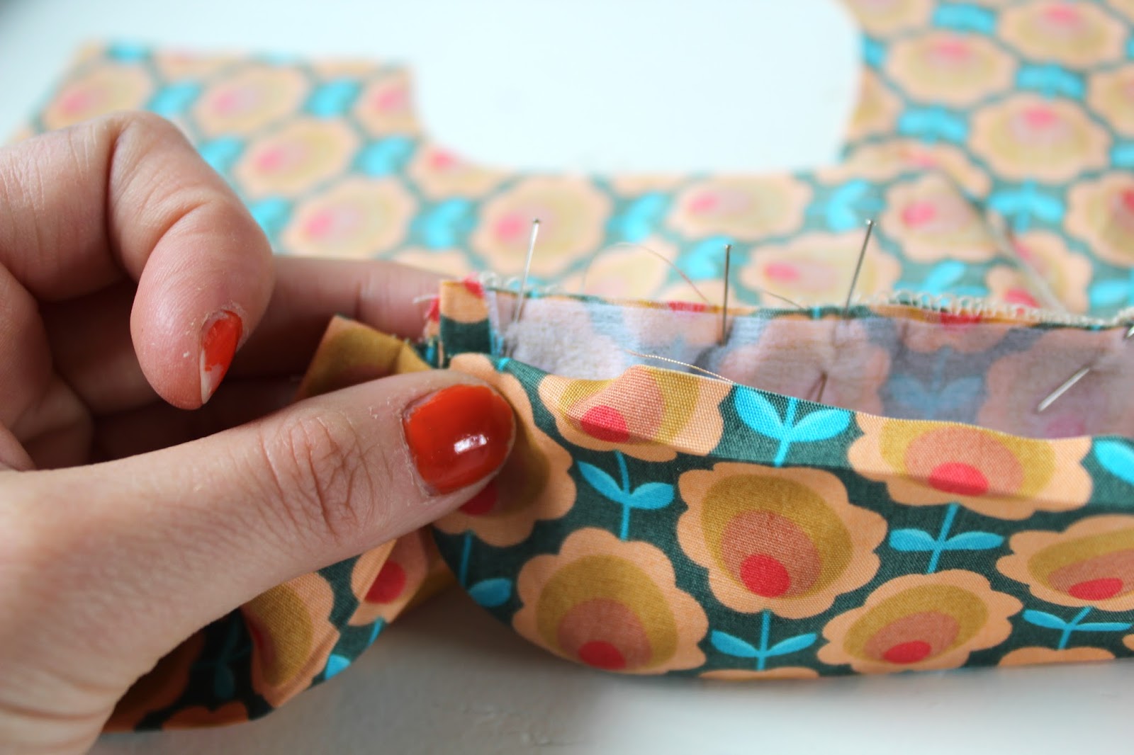 Keer de kraag om en strijk ze plat. Speld de niet-omgeplooide kant van de kraag vast aan de halsopening en naai vast. Begin centraal te spelden.