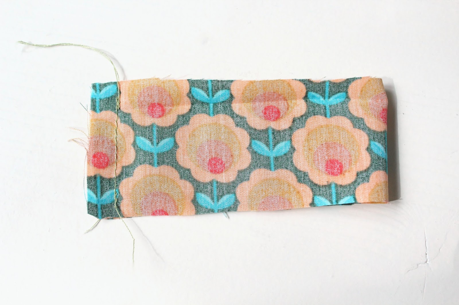 Verstevig het beleg met fijne vlieseline. Snij hiervoor een reep van 2 cm en strijk deze op de omgeplooide plooi aan de centerkant.