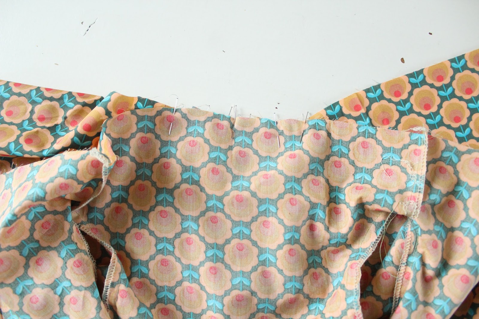 Tip: kijk, voor je alles vastnaait, de plooien goed na. Zolang je nog niets vastgenaaid hebt, kan je nog wat spelen met de breedte en het aantal plooien.